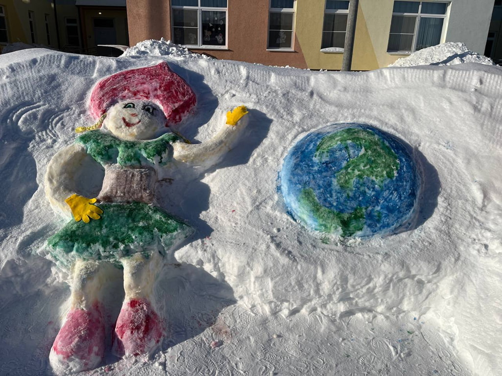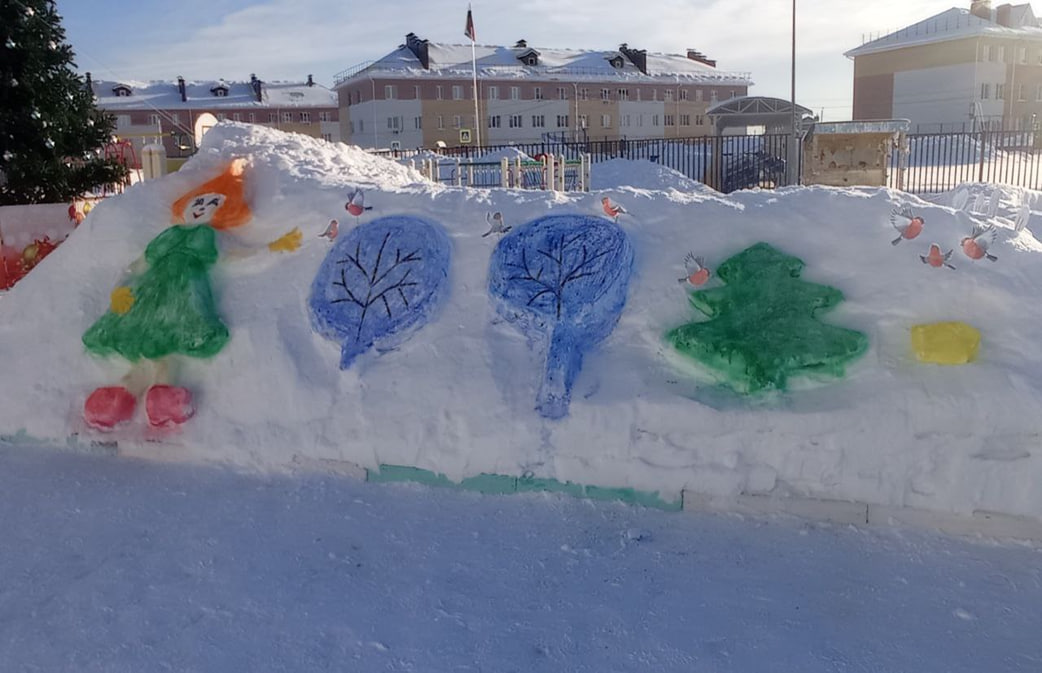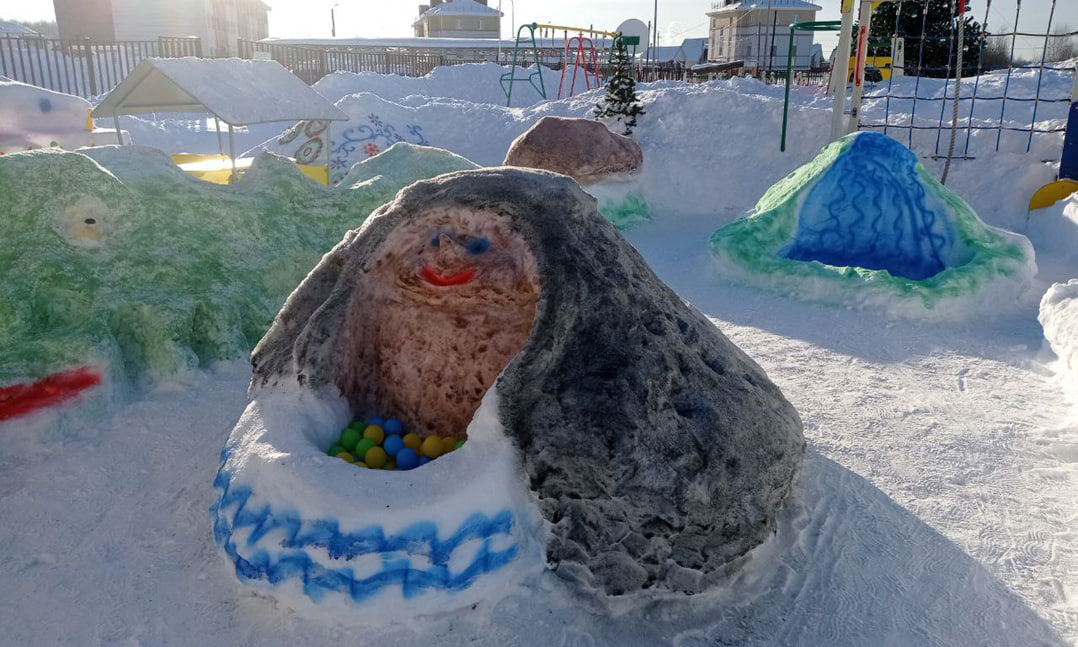 Вот и этой зимой, в рамках участия во Всероссийском конкурсе был построен совместно с детьми и их родителями «Снежный городок Эколят». Зима в этом году нас порадовала снегом, и это нельзя было не использовать. Как только установилась хорошая погода, воспитатели, родители и, конечно, наши детки вышли на свои участки. Используя удивительный и волшебный строительный материал – снег, все участники погрузились в процесс замечательного совместного творчества – сооружение снежных скульптур и снежного городка. С героями Эколятами дошкольники познакомились давно, и встреча с ними на зимней площадке каждый раз вызывает бурю положительных эмоций.